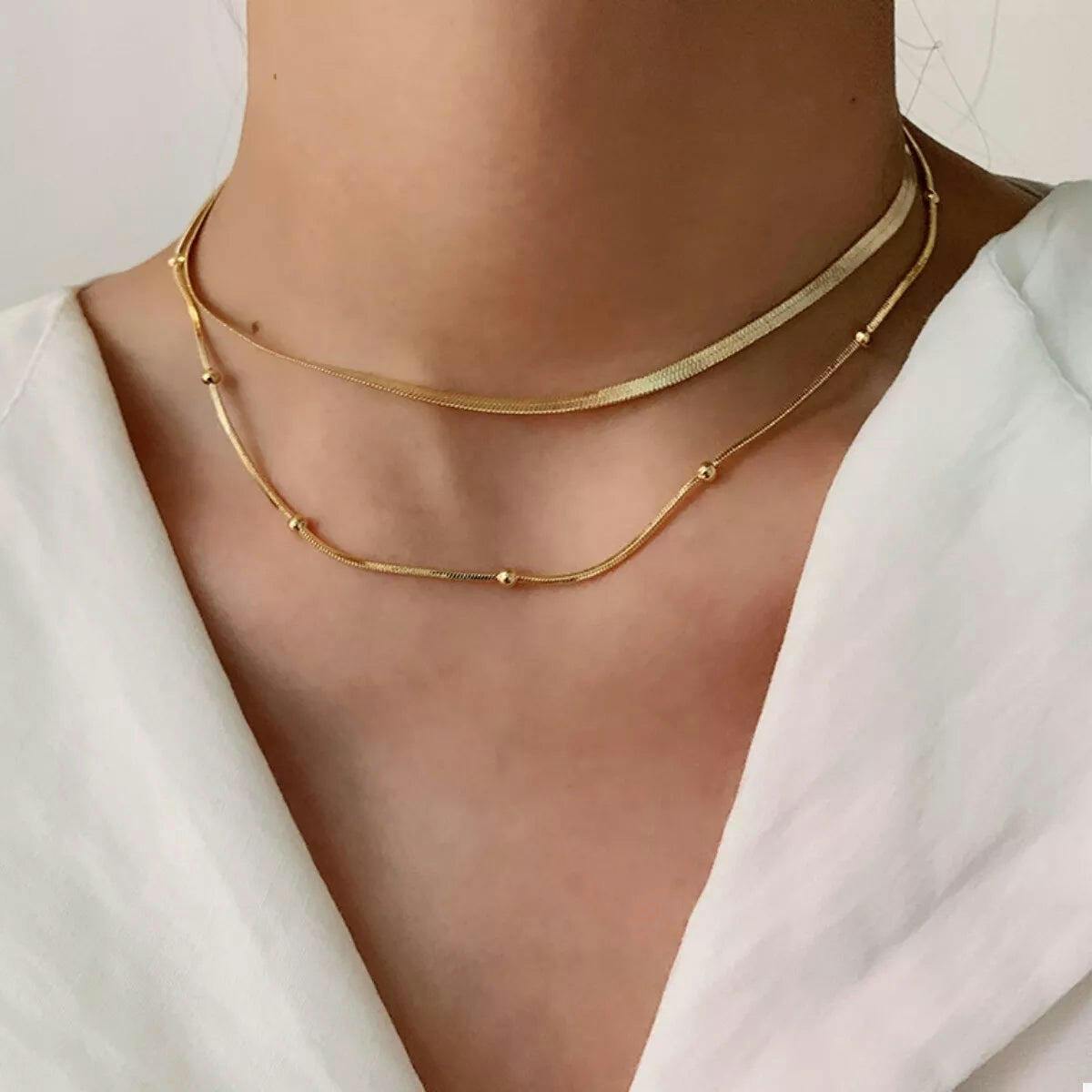 Women's 2 Piece 18K Gold-Plated Chain Necklace Set - Layering Jewelry
