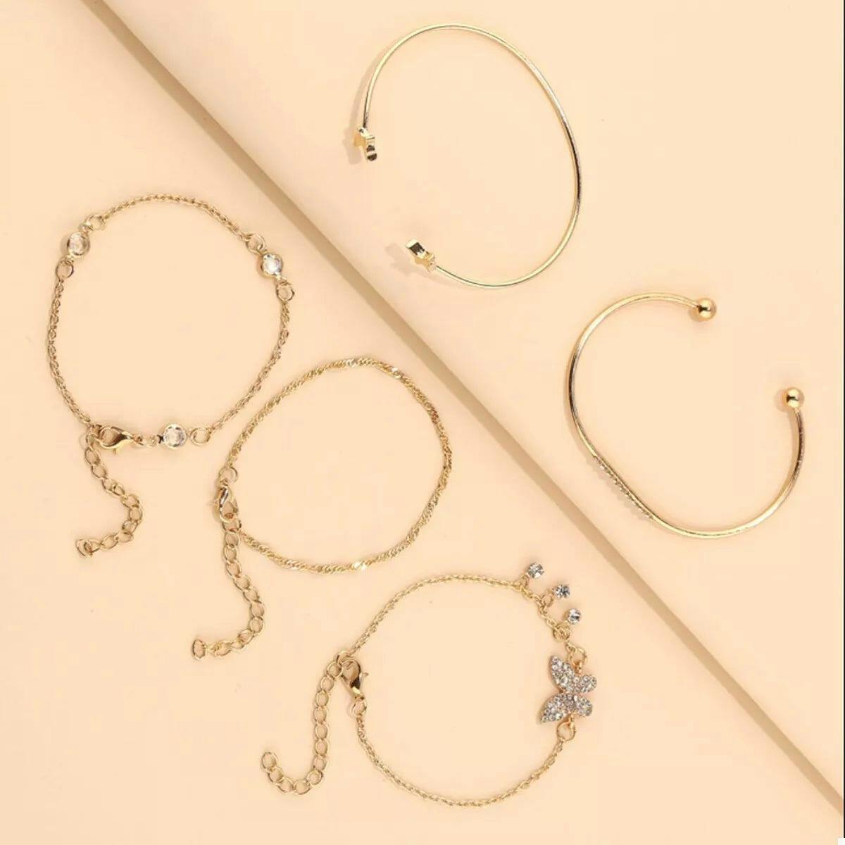 5 Piece 18K Gold-Plated Butterfly Bracelet