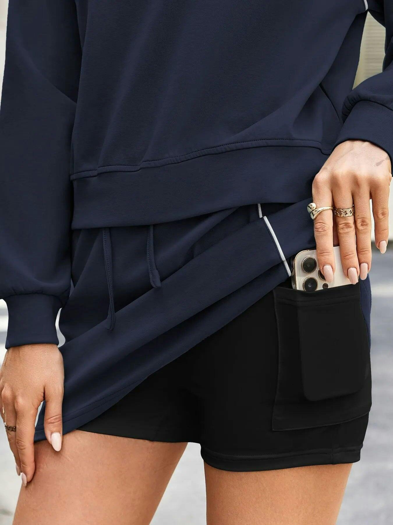 You’ll love the drawstring design that lets you adjust the fit to your liking. The top features raglan sleeves for a relaxed vibe, while the skort includes handy pockets for your essentials. Made from a blend of 55% viscose, 40% polyester, and 5% elastane, this set feels soft against your skin.